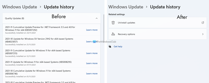 In the image above, you can see before and after comparison. Earlier, the list of all updates is visible in the update history folio, and afterward the list is cleared.